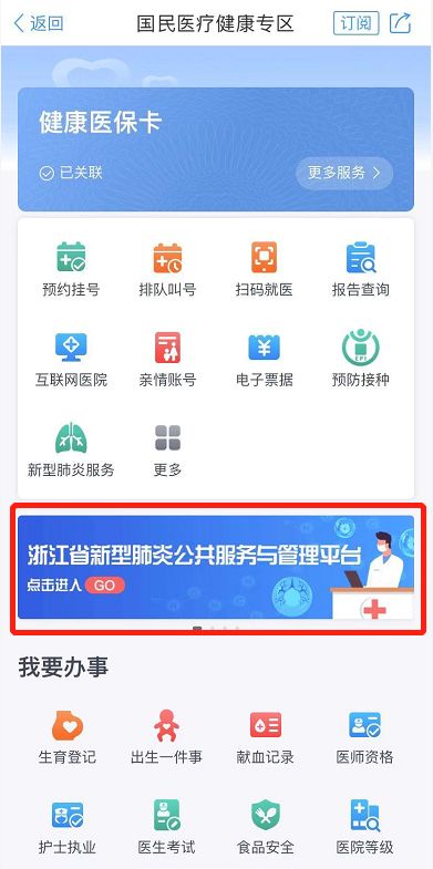 路徑2:打開浙里辦APP國民醫療健康專區→浙江省新冠肺炎公共服務與管理平臺