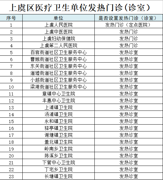 上虞區(qū)醫(yī)療衛(wèi)生單位發(fā)熱門診(診室)